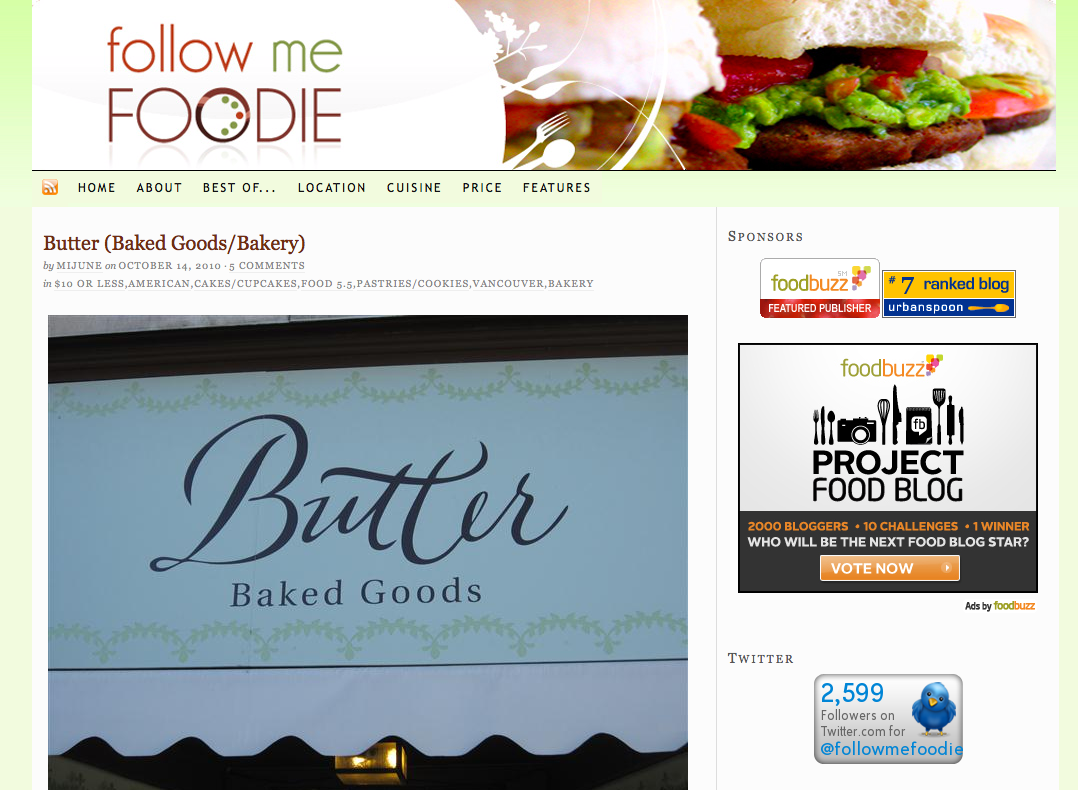 As one of her followers on Twitter, Mijune is an avid-foodie-tweeter (@followmefoodie), sharing fun updates life. Her blog includes reviews of restaurants and even grades them on a scale, which is handy; along with her convenient navigation bar – listing top tens and best of. Her photography is fun too!