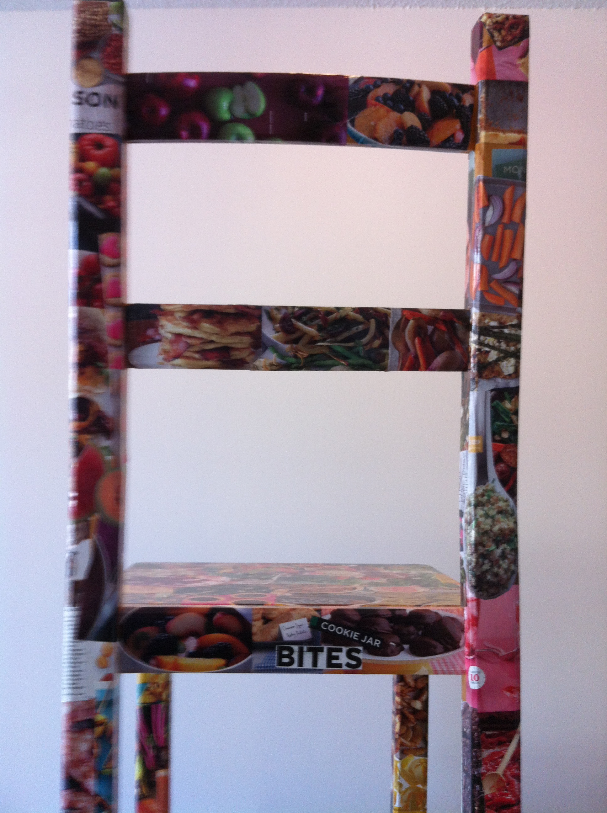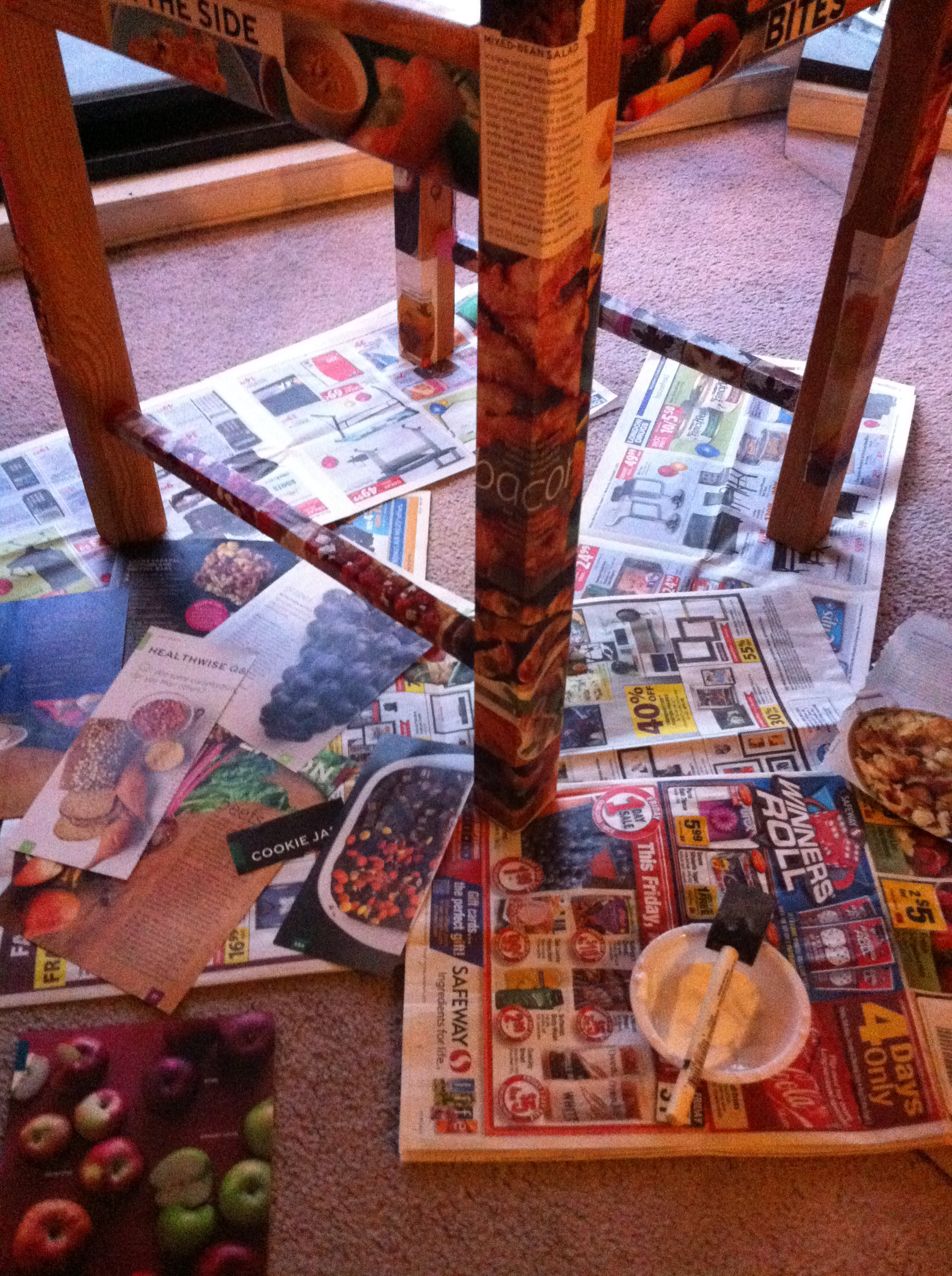 With a little bit of glue, alot of time, and some great food imagery, I managed to cover every bit of my chair! I sprayed it with a varnish layer to polish it off at the end, and make it more durable for regular use.