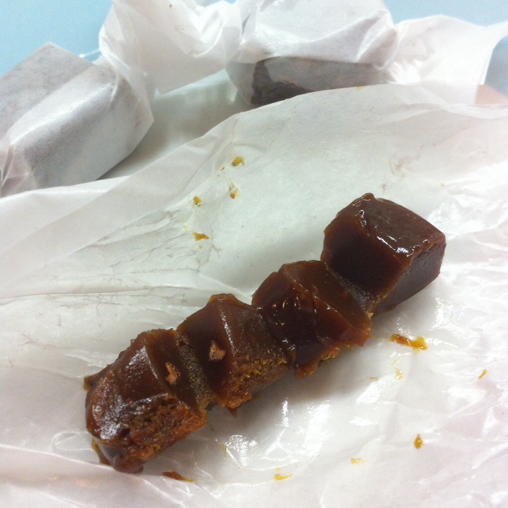 Butter caramels with cocao nibs (pieces) inside were shared with us for our help. I cut one up when I arrived home to show you. You’ll have to trust me that they taste heavenly, or visit the shop to buy some and test for yourself.