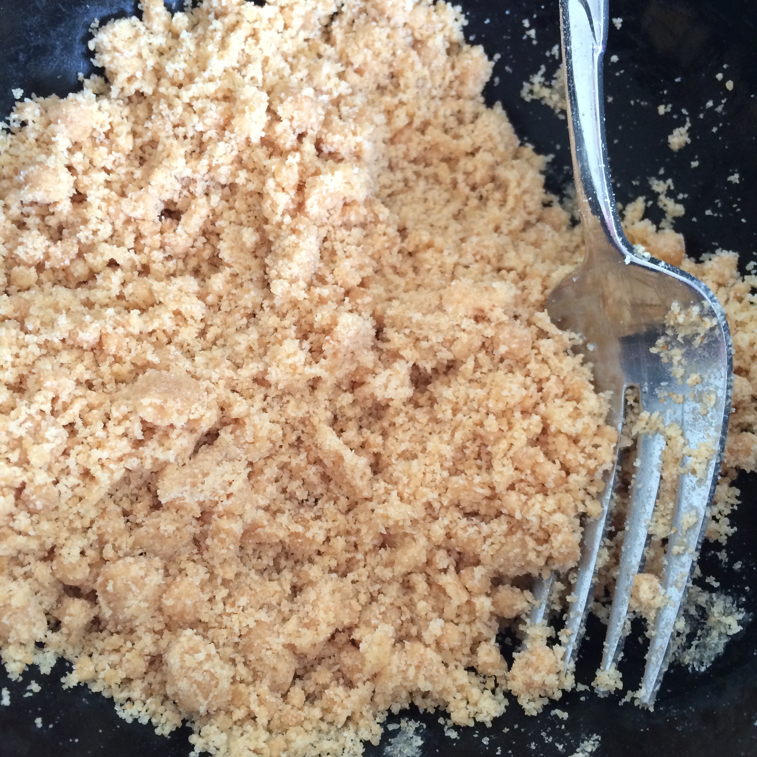 Melt the butter or coconut oil, and gently stir in the sugar, coconut flour, and vanilla. The mixture should be crumbly, with a few lumps. Set aside to use for toppings on the muffin right before baking.