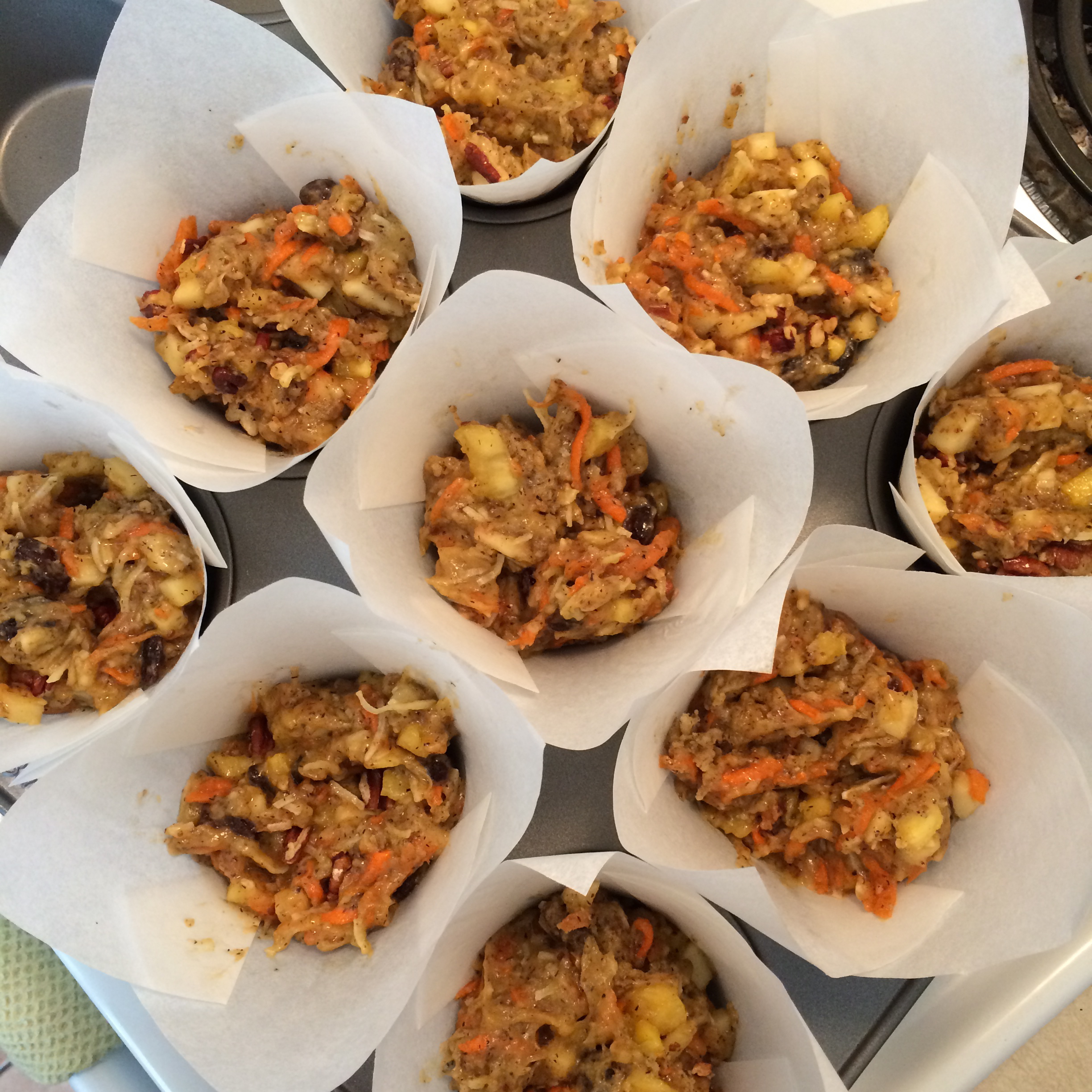 Fresh morning glory muffin right out of the oven – love the flavour from the blend of apple, carrot, coconut, and pineapple.