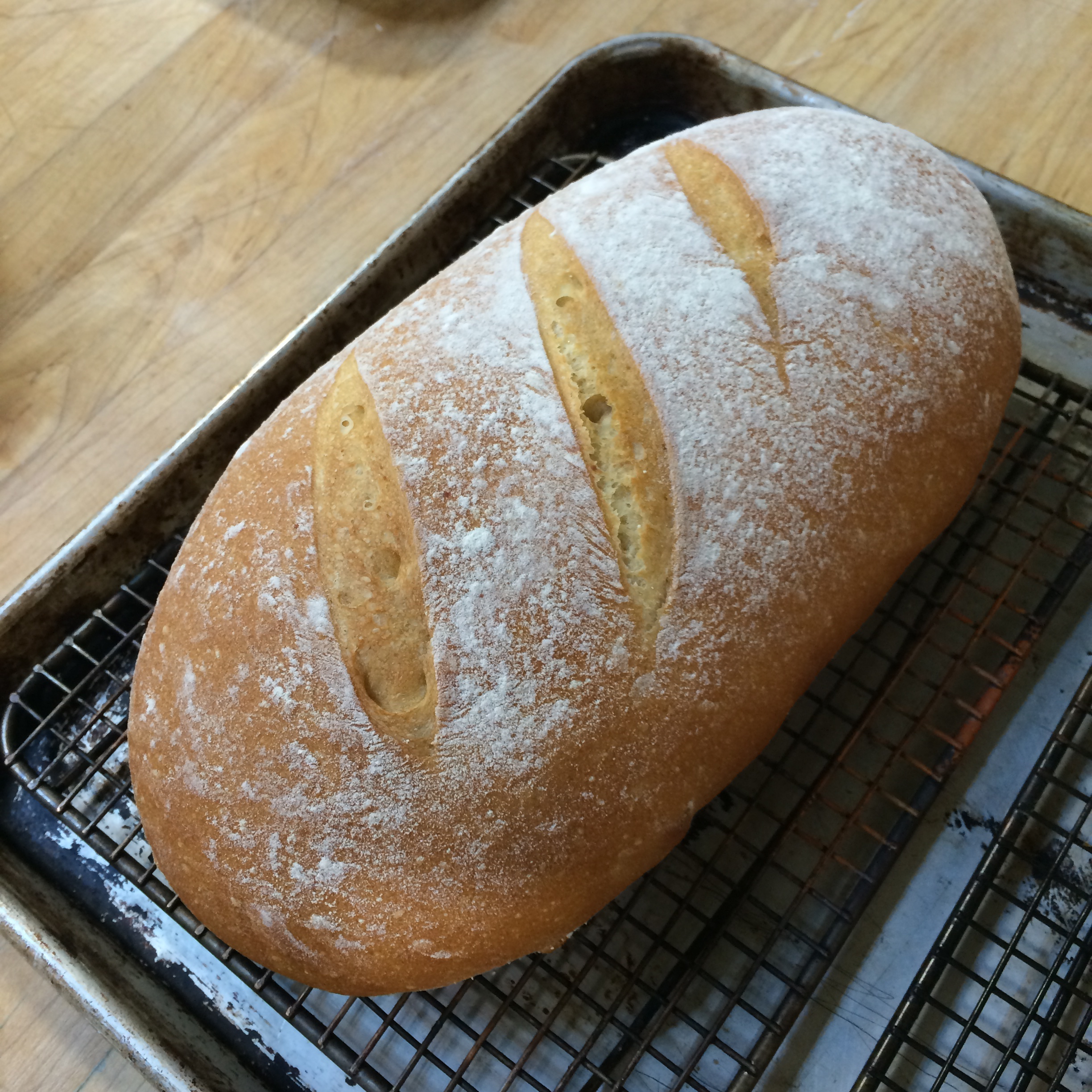 My lean loaf close up! We are learning about scoring the loaf as well, i.e. cutting the top before it goes in the oven. It is not that simple, you have to be careful to score just the right amount (not too little and not to much) as it effects how the loaf will rise.