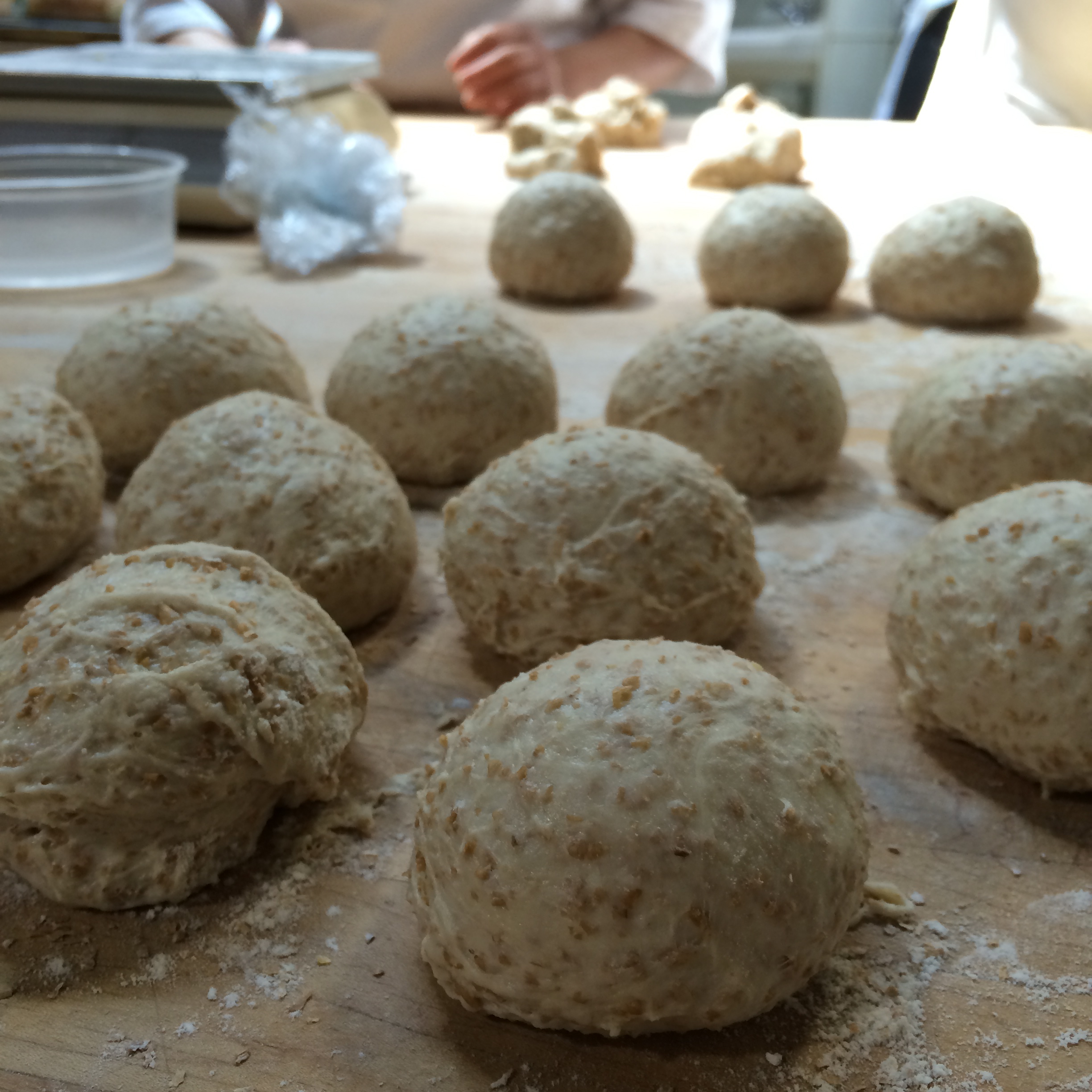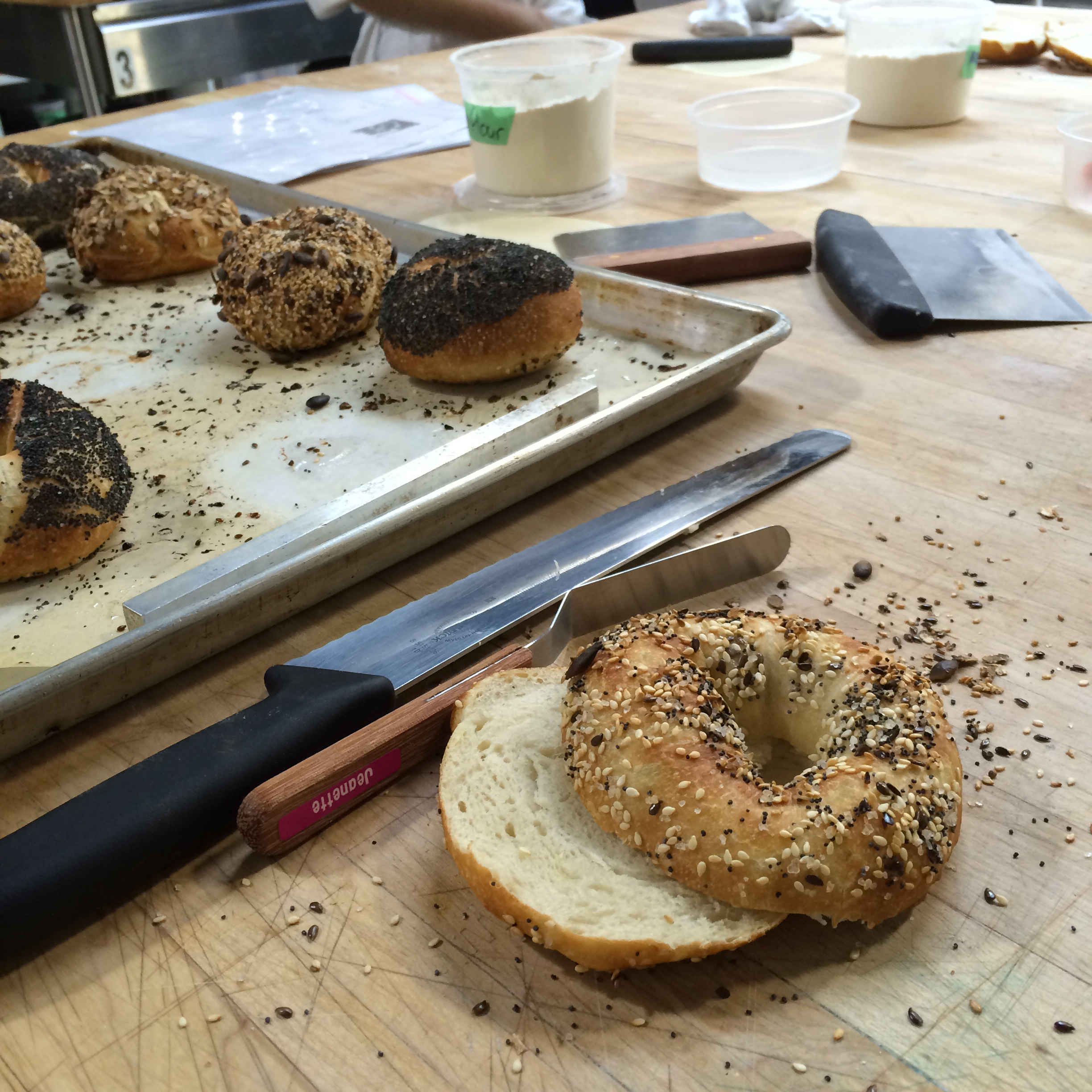 We look at everything we bake at the end of each day, to assess the “crumb” inside and compare with other stations to see how theirs turned out. We learn if more or less kneading would have made a difference. It’s fun to see the differences and understand why, some bread has more holes and others less. To the untrained eye you may not be able to notice, but we are being trained to look for these things.