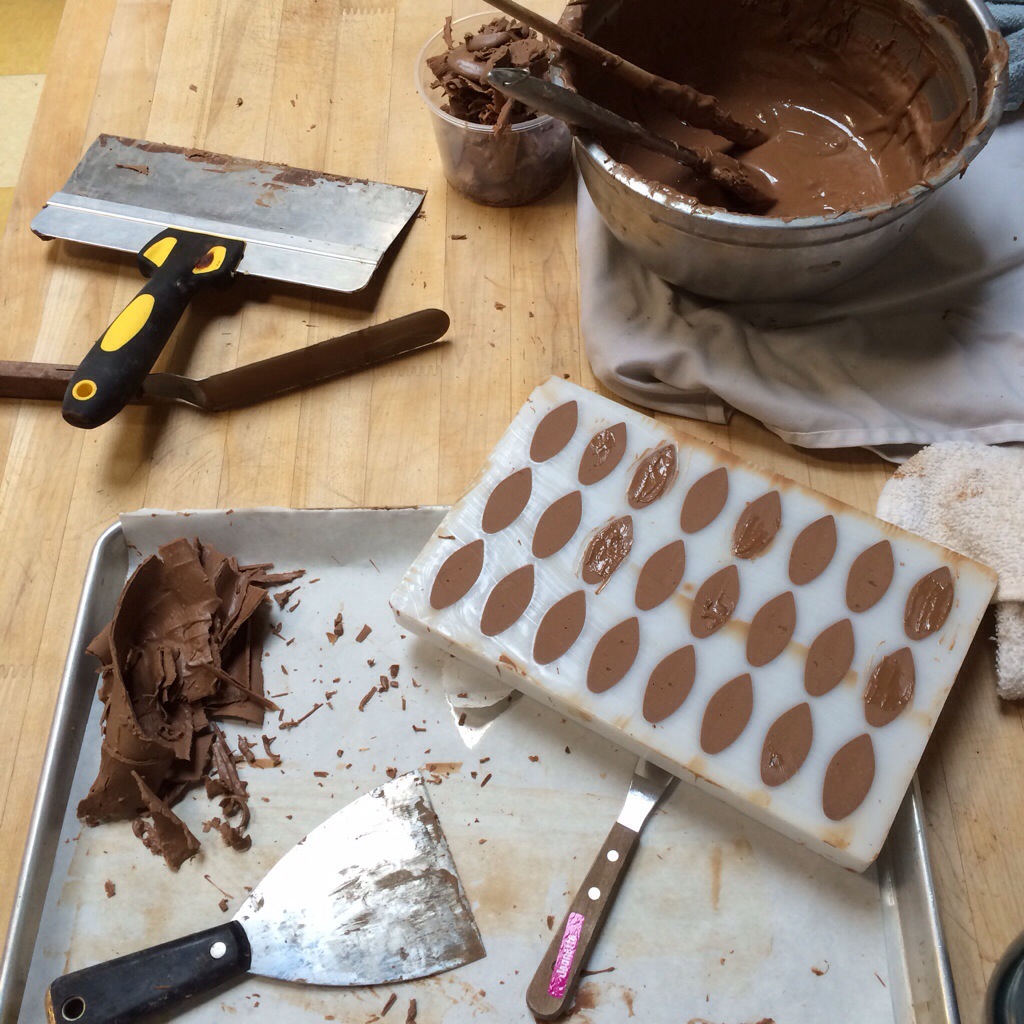 We made so many chocolates in the second week of chocolate – so many…. Below is a photo recap of my week in chocolate. But before I get into the photos, I must declare my elevated appreciation for good chocolate now after working with it. I always liked ‘good’ chocolate, but now I think that quality of good is even more refined. No hershey or nestle for me, it is all crap.