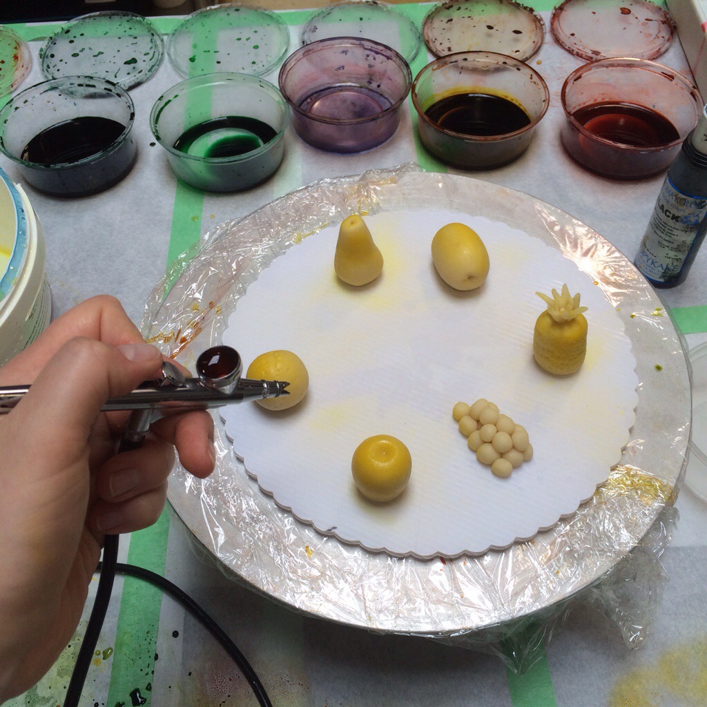 Here is my fruit, all shaped and ready for airbrushing. You start with the lighter colour and shade up to the darker colours.