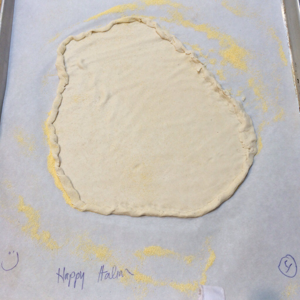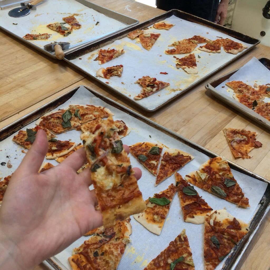 This pizza tasted so good after a hot morning of baking. We each topped our own pizza and then shared across the class for a late lunch. Gluten free pizza! Yum!