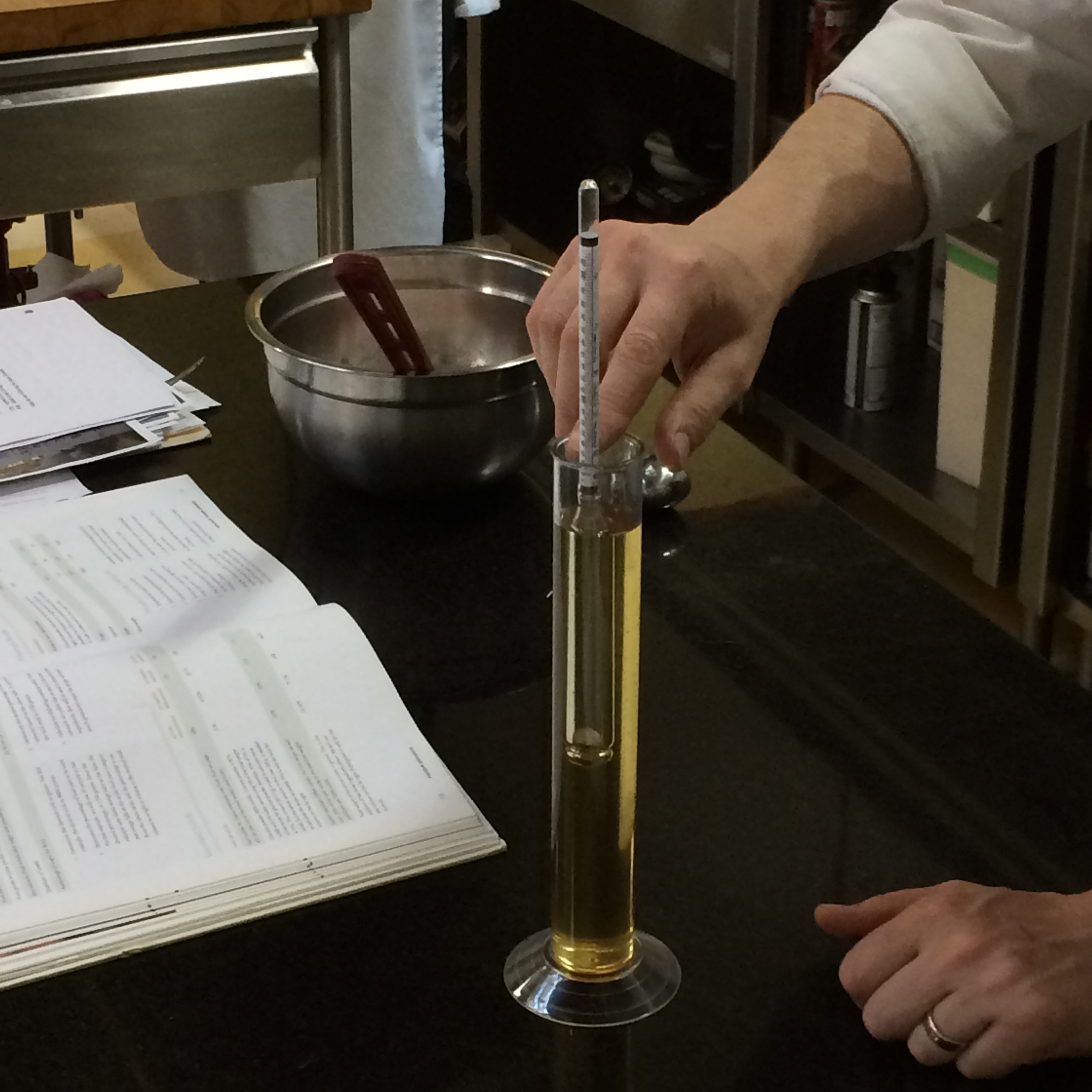 Oh yea, we learned how to measure the sugar concentration in sorbets, using this device – called a saccharometer. Sorbet only works when you have the right ratios of ingredients, hence this gadget.