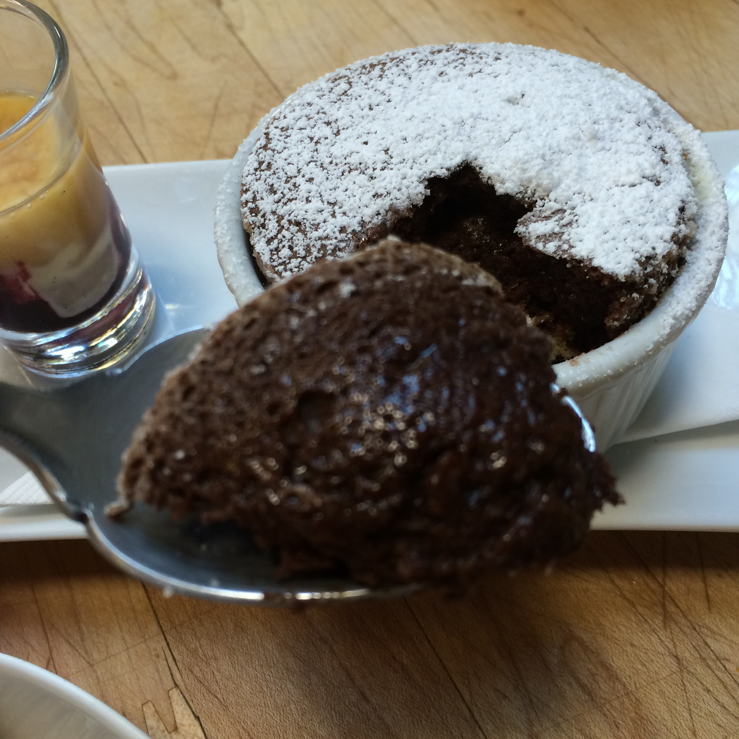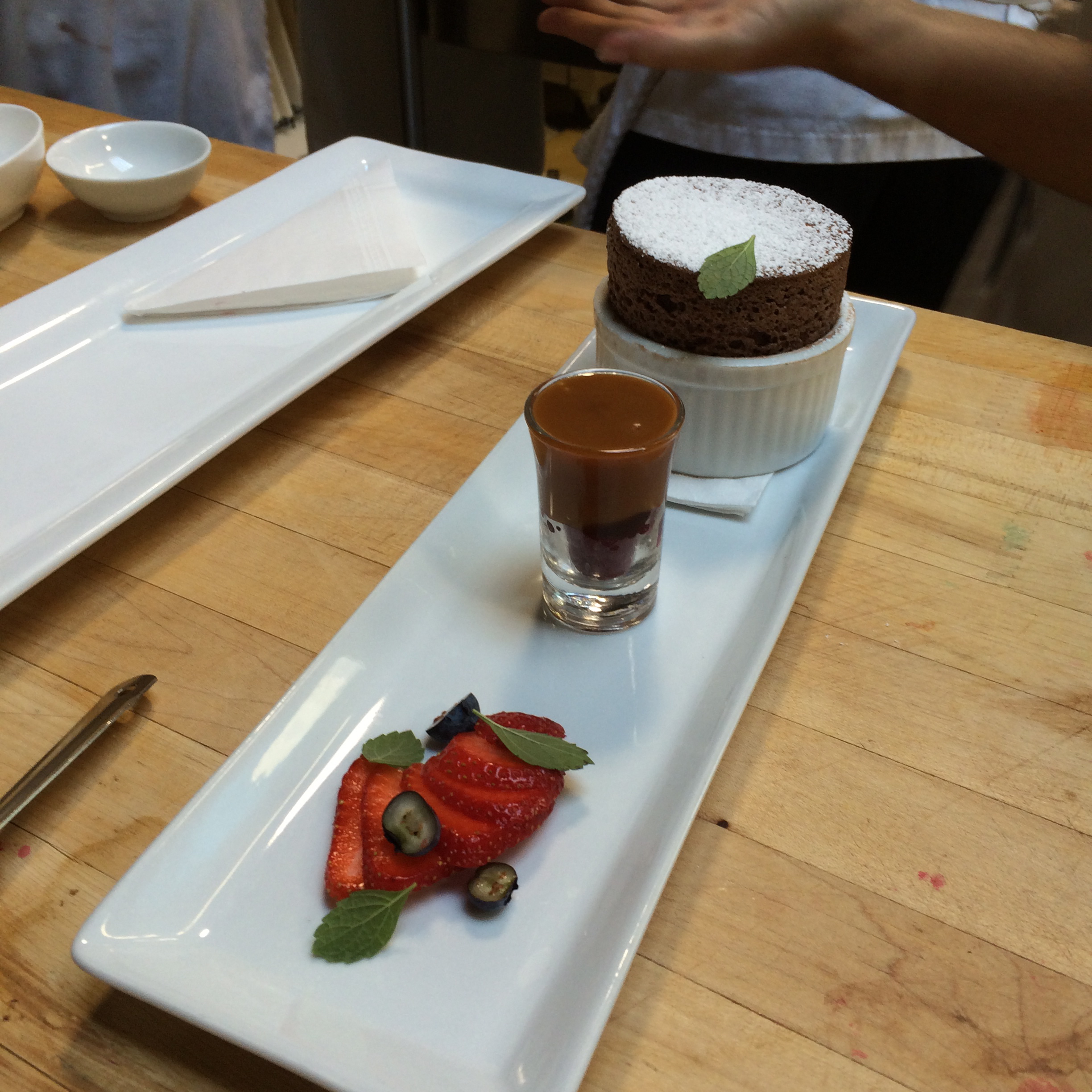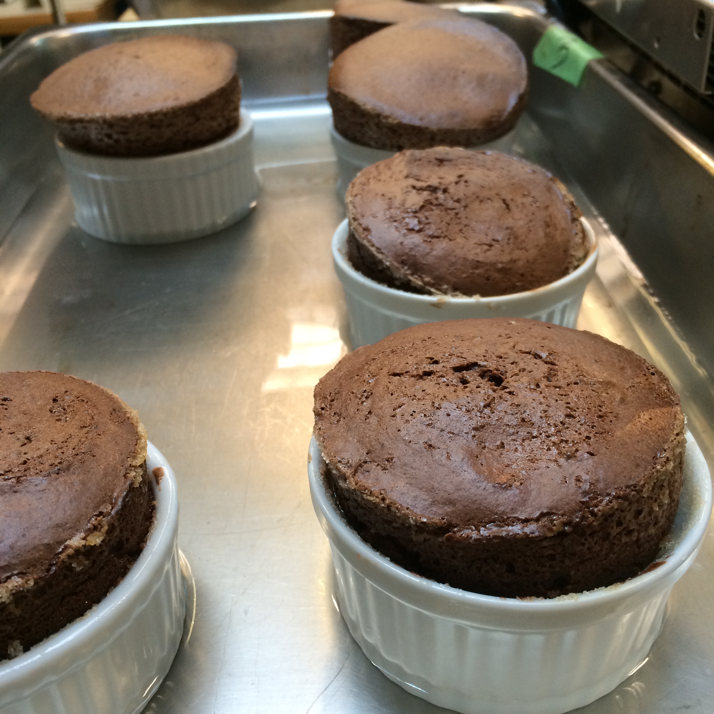Souffles have to be plated immediately after baking time is done, or else they fall. They are quite rare on menus nowadays for this reason, the timing of getting these out to the customers is a challenge. Or else you have a fallen chocolate cake. Still tastes good, but it’s not the same.