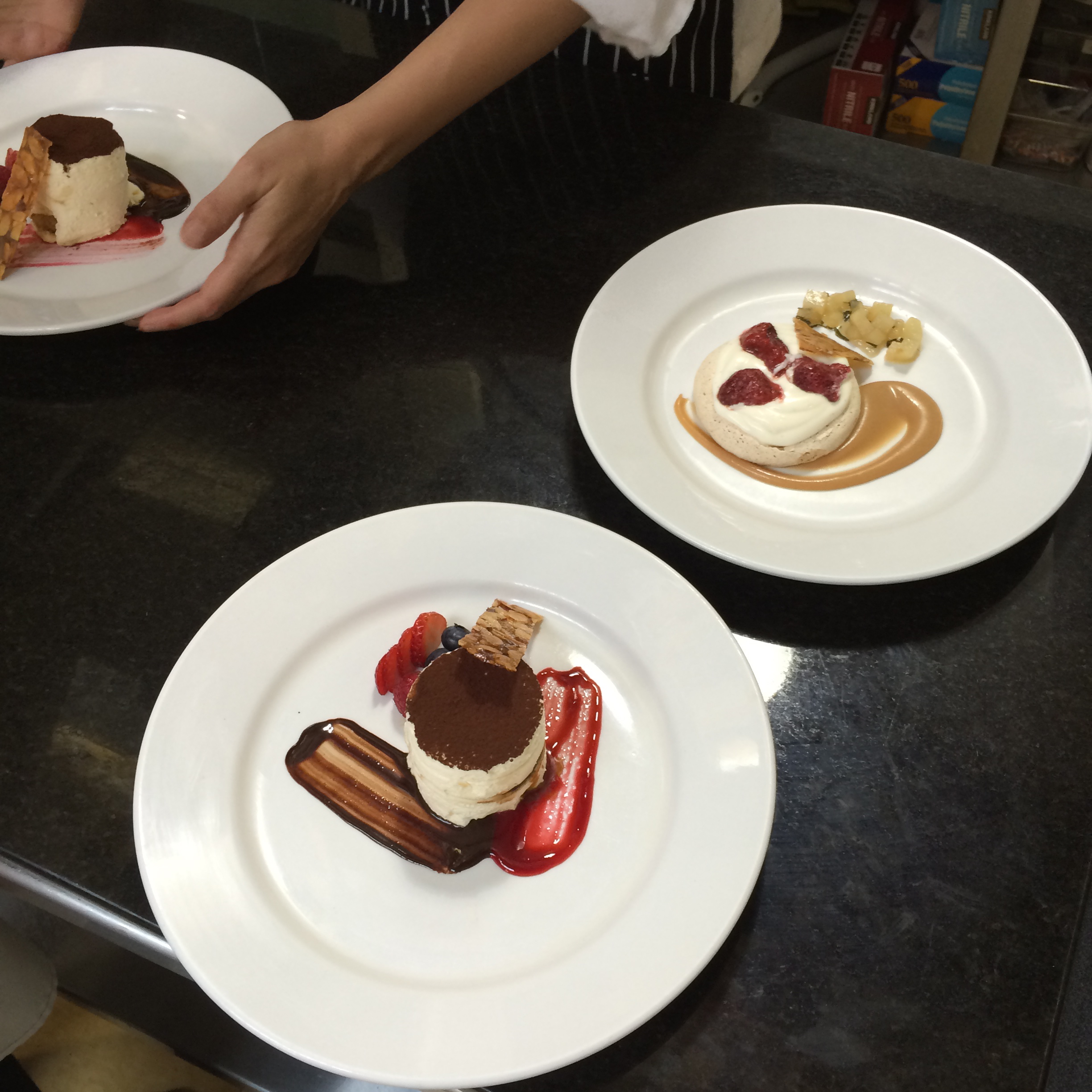 Tiramisu. This is Chef’s demonstration for plating this dessert. Essentially she plates a dessert and we had to copy it, EXACTLY, because that is how it will be in other kitchens.
