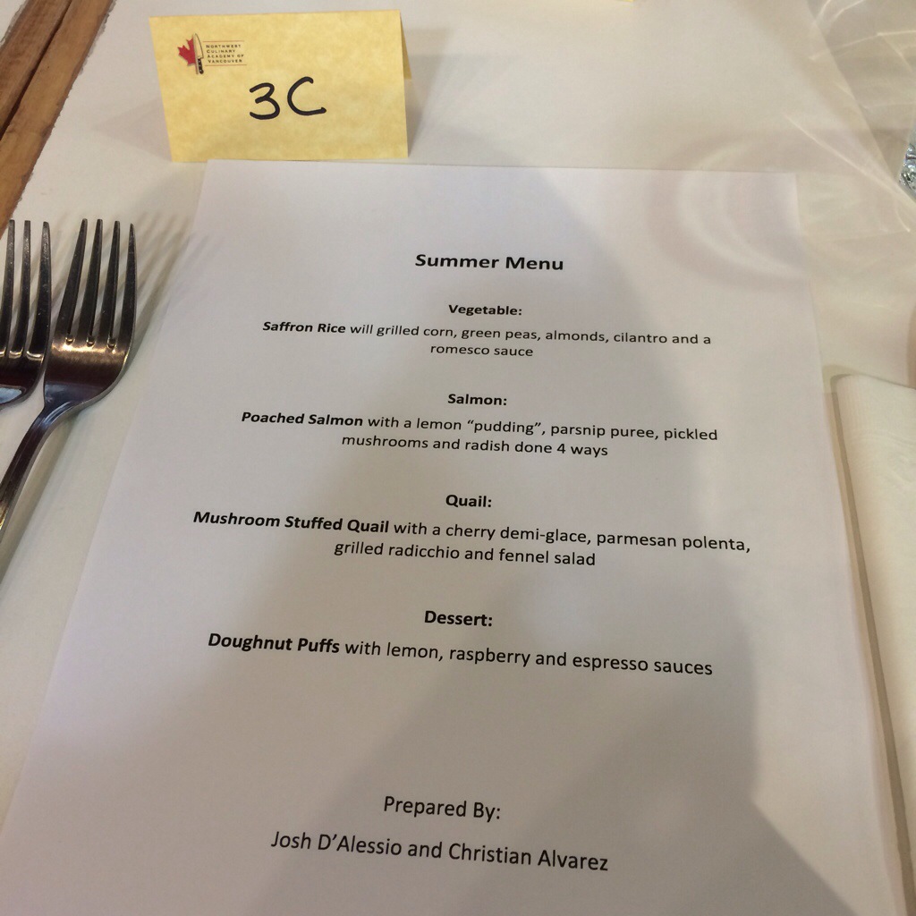 We had a short break, and then wandered over to the culinary side of the school where we were seated with menus, prepared by the students. We enjoyed their three-course lunch menu, part of their final menu development, and were able to provide feedback too. Since I barely ate breakfast that day, it was a treat to enjoy a nice meal after our exam.