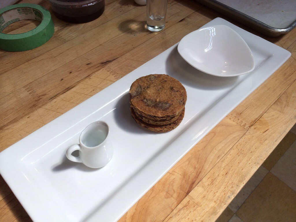 I immediately alerted Chef about the freezer status. We sealed the freezer shut so it would have a chance of freezing by the time service starts. They offered to buy us all ice cream to use from the grocery store down the street, and would eliminate that component from our judges’ marks, due to freezer issues. Phew. But I still had to present a dessert of some kind.