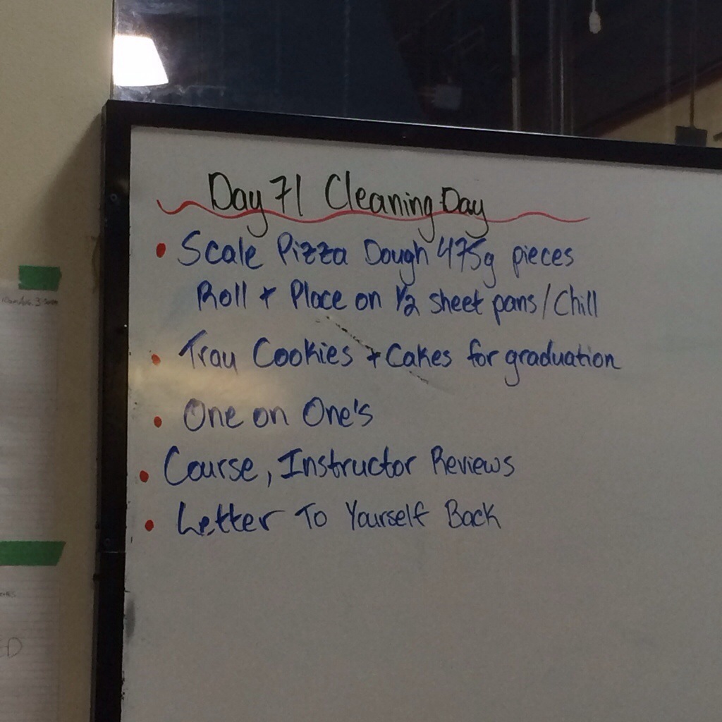 Thursday we all arrived at the school to clean, have our final one on one meetings with our chef instructors, receive our letters back to ourselves (written on our first day of school), and then pack up our lockers and drawers.