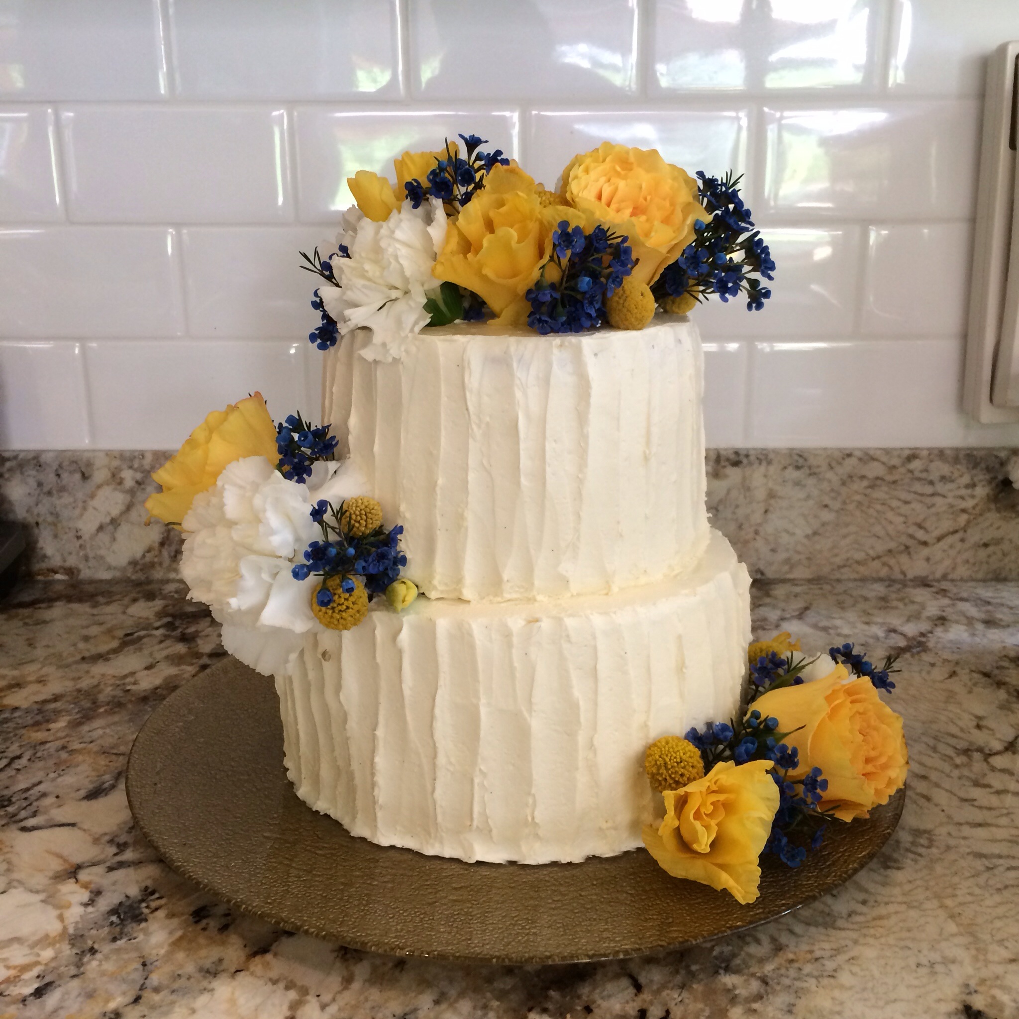 The wedding was last weekend and it was beautiful. An outdoor ceremony with weather that cooperated at the 11th hour. Oddly the weather worked out well for me too, not too hot otherwise buttercream melts in warm weather.