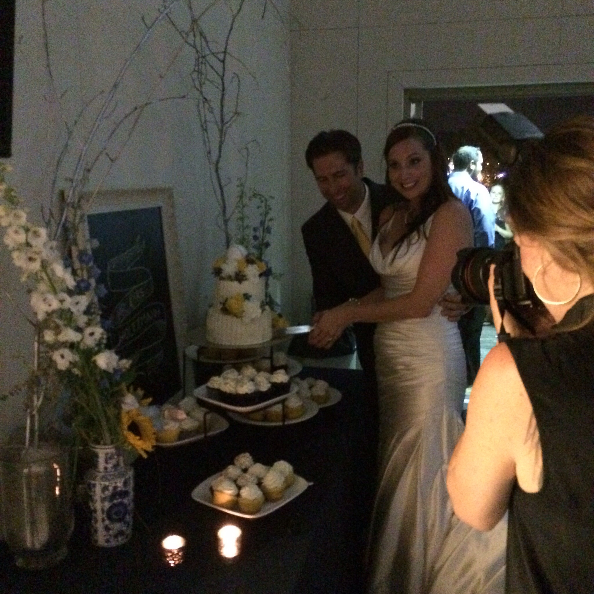 I just wanted them to have one photo of the cake with the appropriate amount of cupcakes to stock the plates. That is all I wanted. Then the dance floor opened up and dancing began. Cupcakes started to disappear even faster. I realized there were no more left to stock the plates, so another friend and I started to guard the cake table! Seriously. I felt bad, but at the same time, we didn’t have sign to say “don’t touch”, and the cake cutting was not scheduled until much later. I talked to the wedding coordinator and we managed to get the cake cutting to happen earlier. Yahoo!