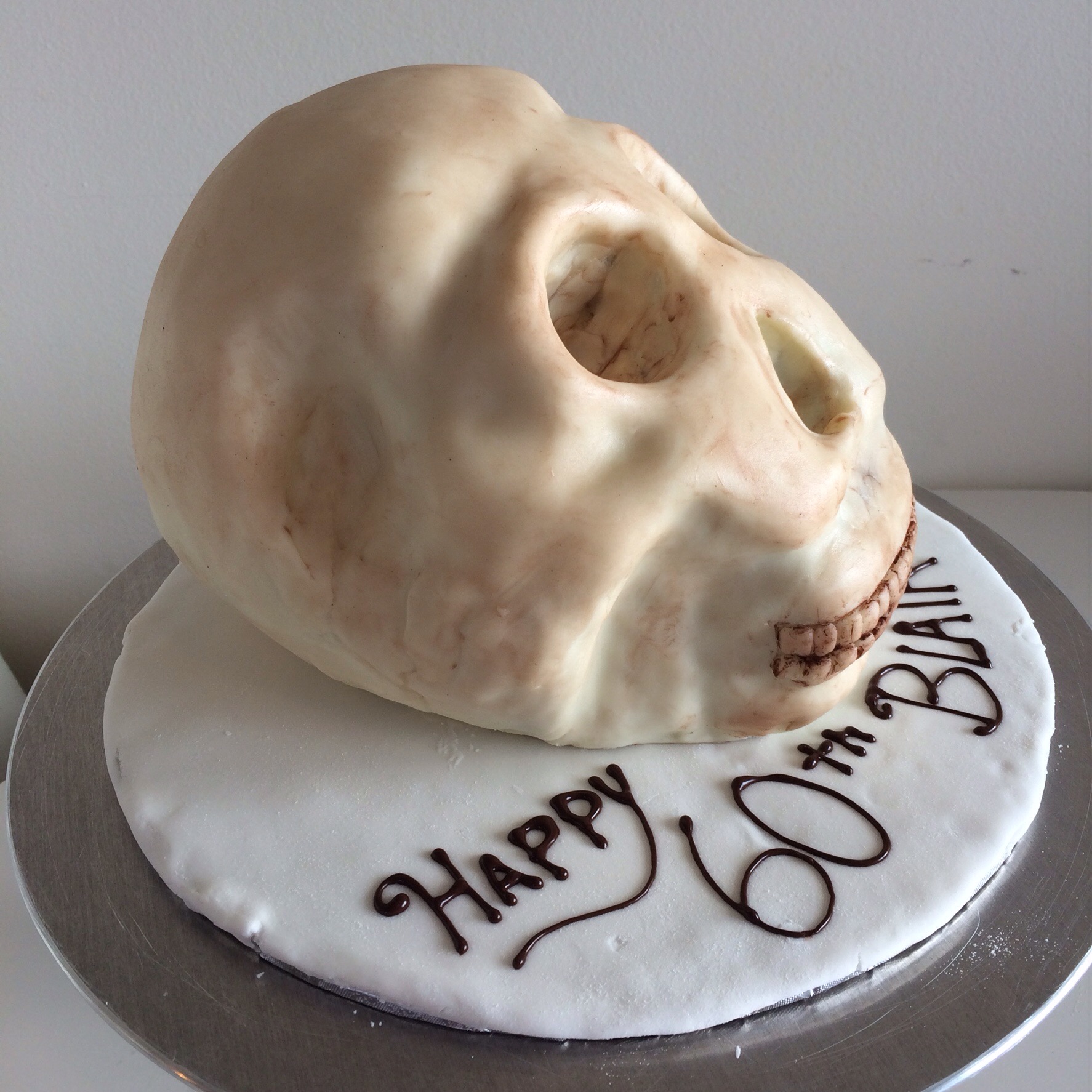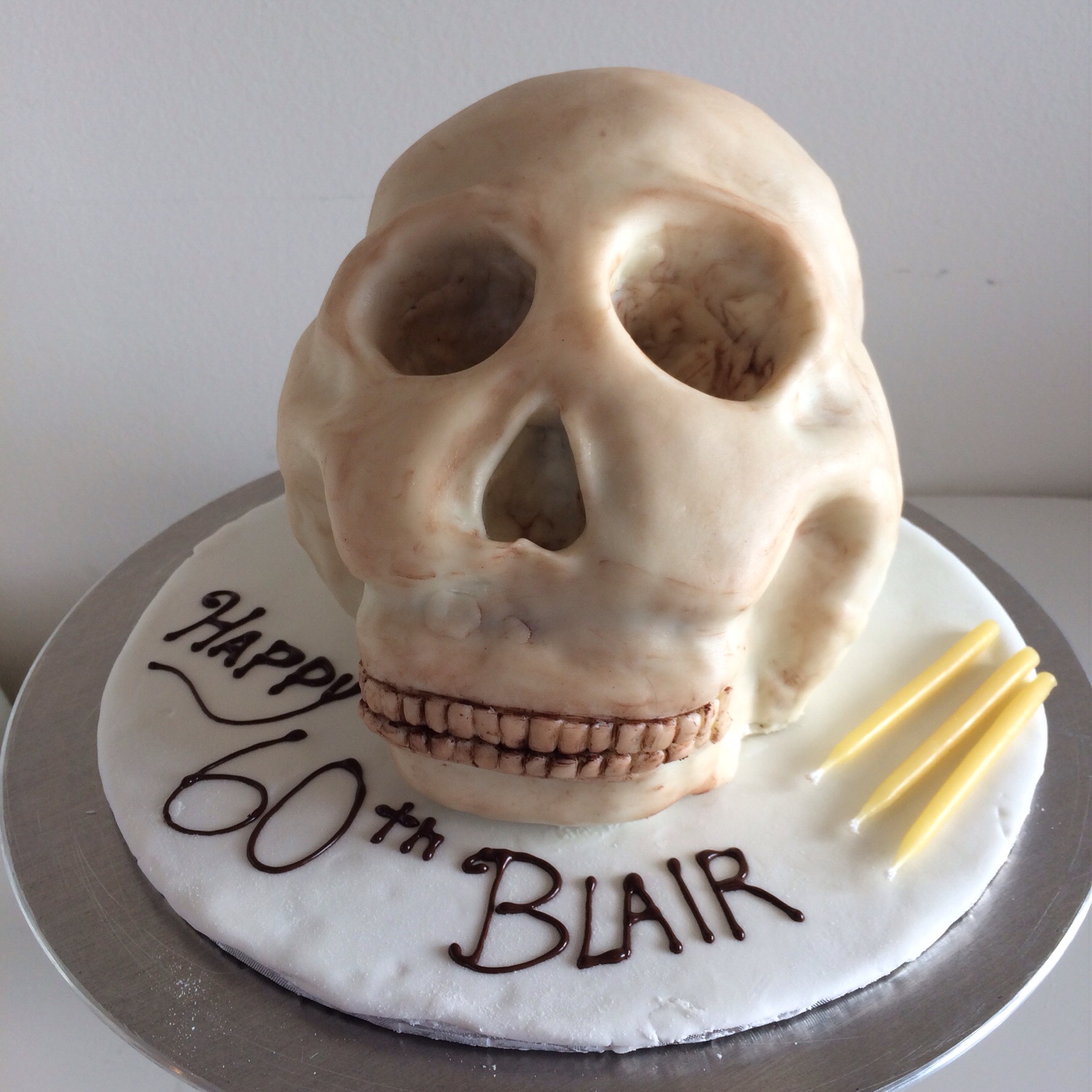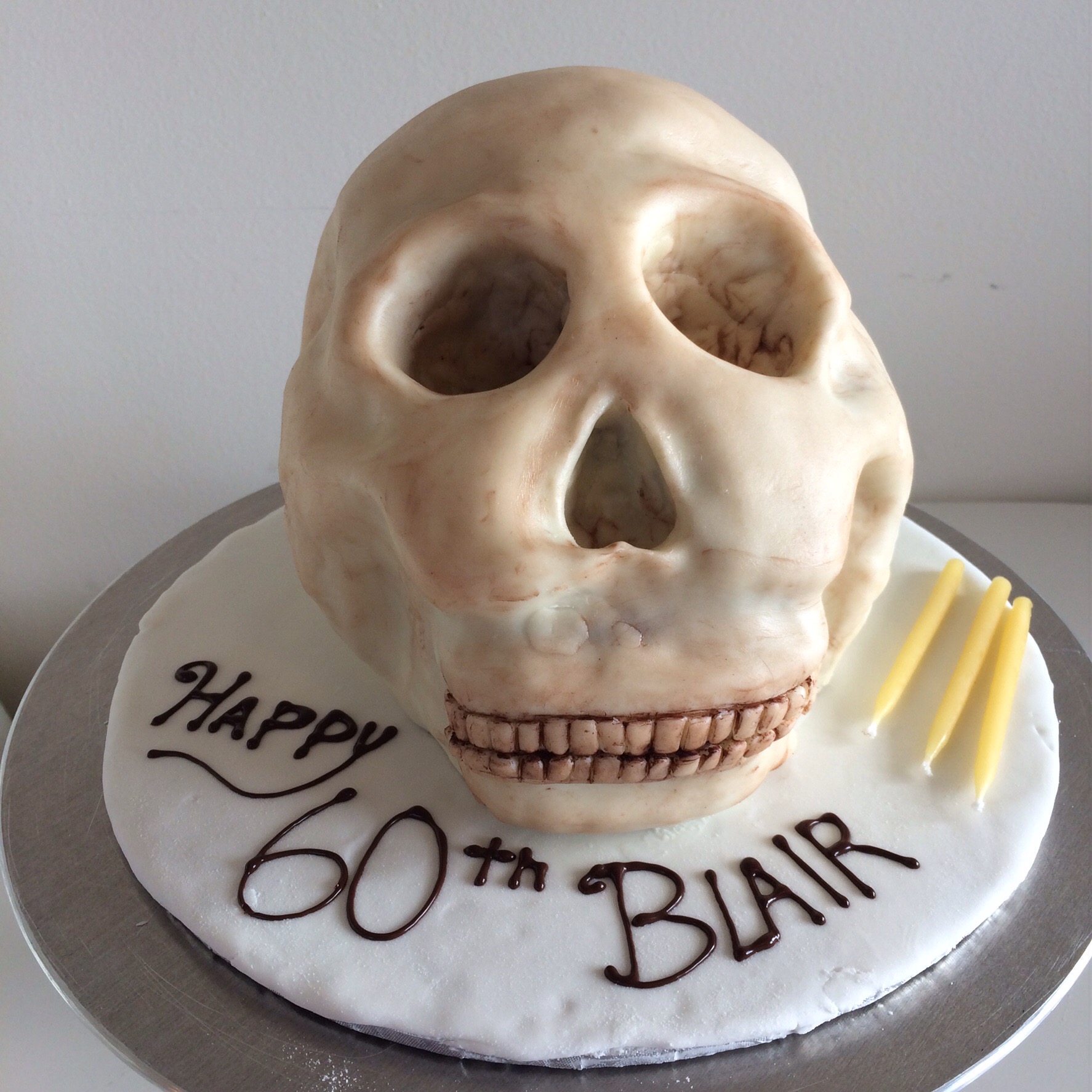 A few weeks ago a friend from my old running group asked me to make her husband’s 60th birthday cake. She requested a skull, after explaining it might be unusual, but her husband would love it. At first I didn’t know if I could, but then I researched it a bit, and realized I could definitely do this. I had not made a sculpted cake before but learned a bunch of tricks over the past few months that I knew would help.