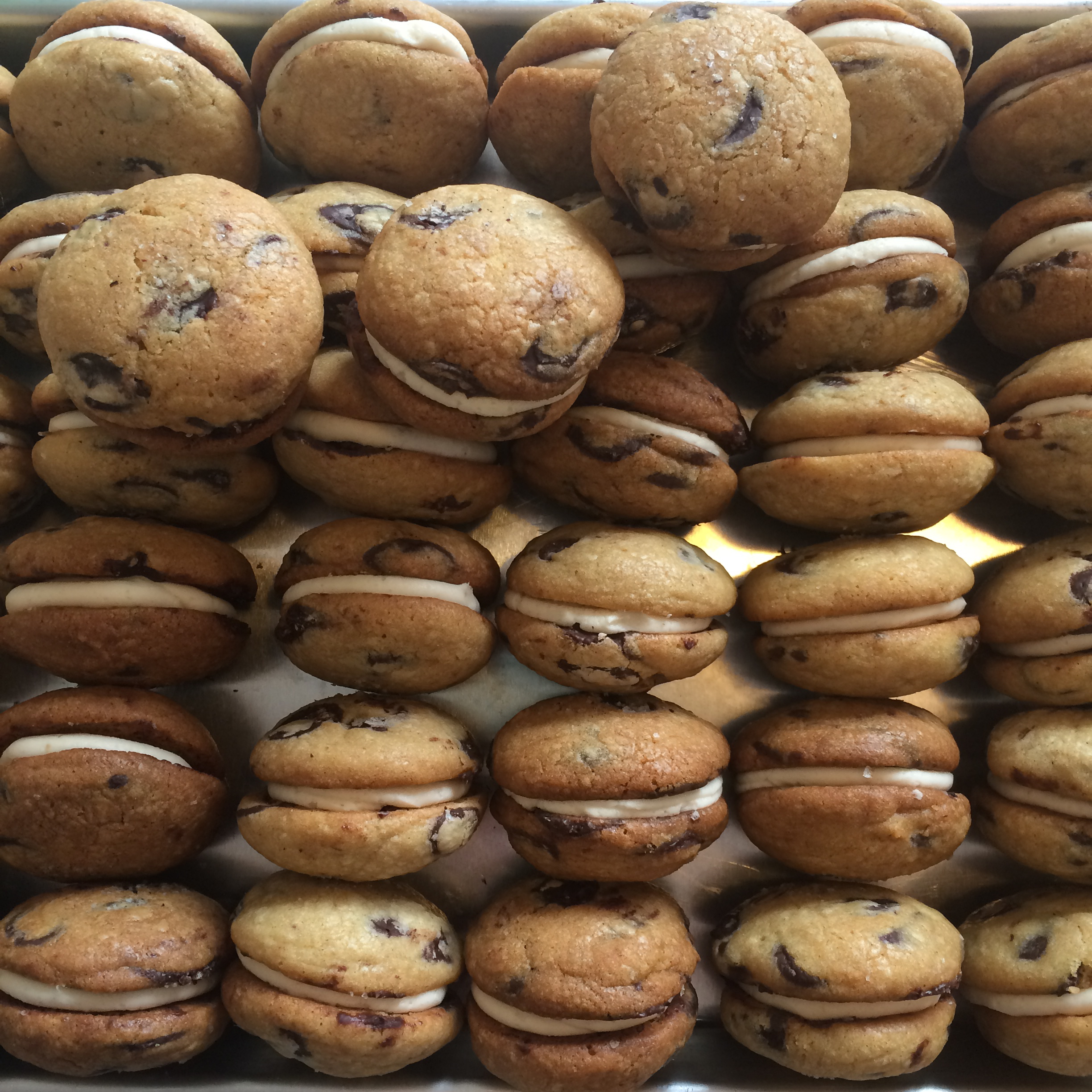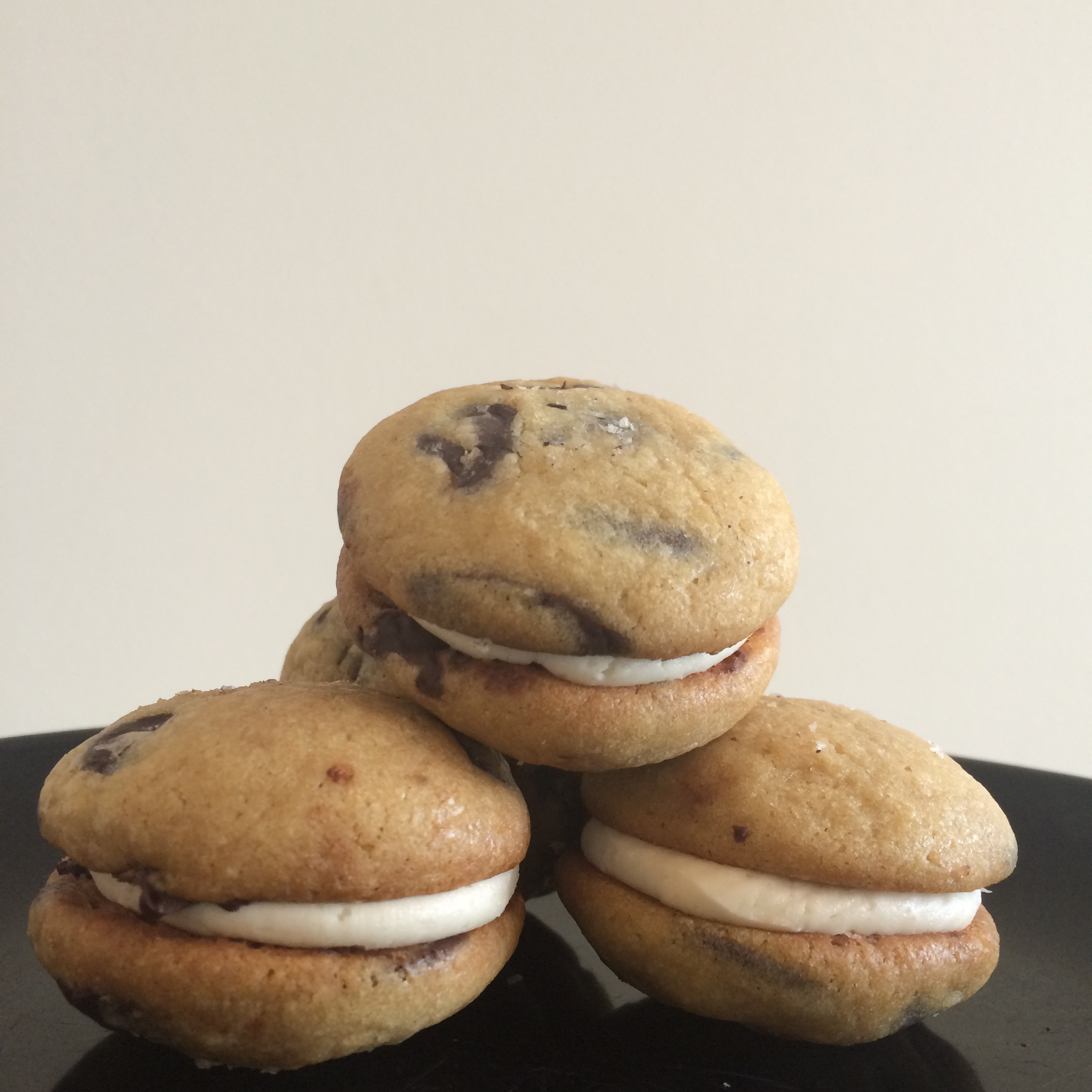 Perfect with a cup of tea or glass of milk, a mini chocolate chip cookie sandwich