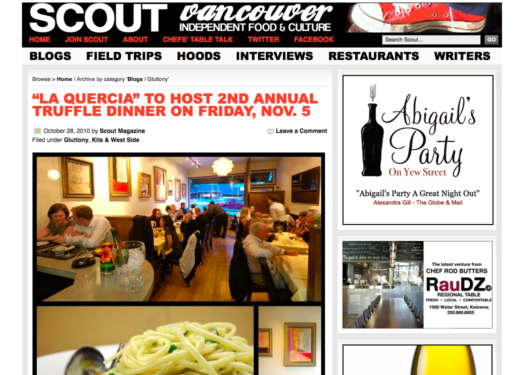 Andrew Morrison is the master mind food-writer behind this site, along with several contributors, and his content has grown to cover more material now than just food. But the Gluttony blog section of his magazine is the bookmark of all restaurant-news-bookmarks to have in Vancouver. Through my journey over the past several months, I have heard about Andrew’s site on many occasions.  He is known for being in the know on Vancouver’s food scene; if it’s new in town, re-opening, or re-invented – Scout Magazine has it covered.