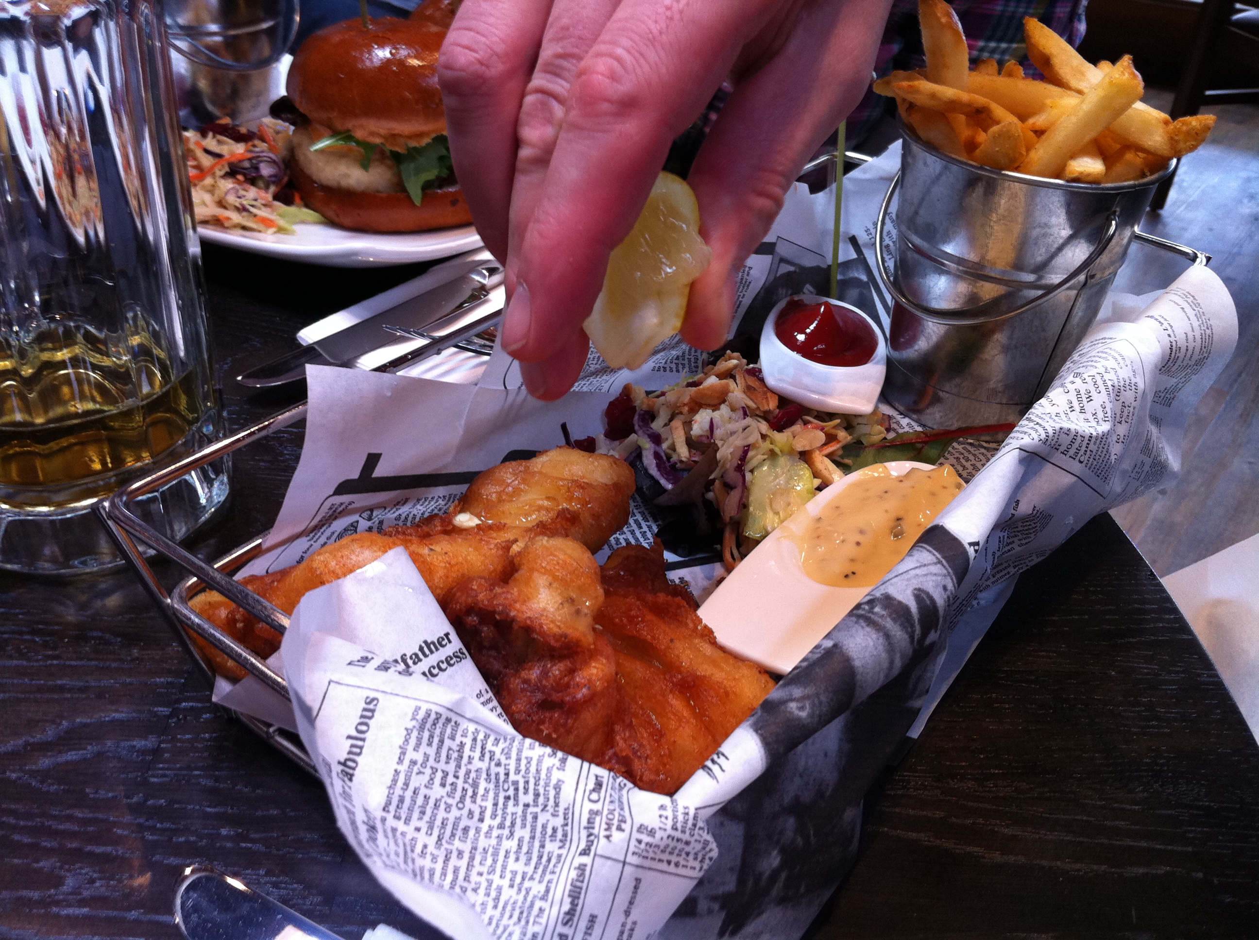 Classic fish and chips... The British guests I dined with said the fish passed with flying colours.